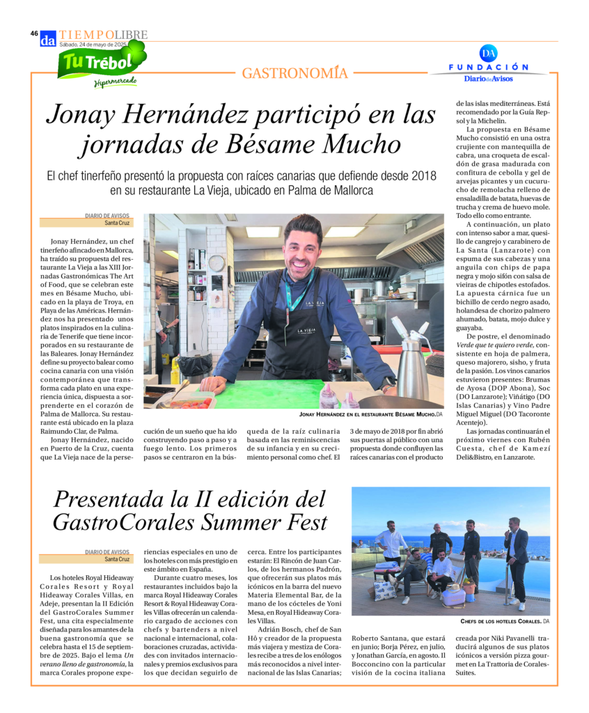 Descubre lo que la prensa dice de nosotros. Desde reseñas elogiosas hasta entrevistas con nuestro Chef Jonay Hernández, La Vieja se posiciona como un referente de la cocina canaria en Mallorca.